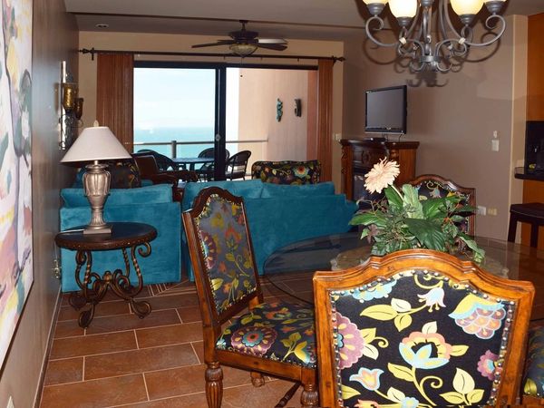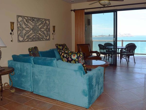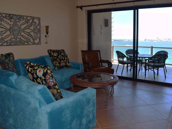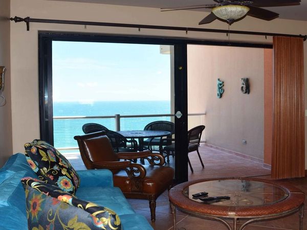 This 3 bedroom, 4 bath, end-unit condo overlooking the beach offers decorative appointments that are unparalleled. Walls of glass in the Living Room, Master Bedroom, and Bedroom # 2 reveal 270 degree views that reach to the Mayan Palace, along the beach of Los Conchas to Whale Hill and vistas of all Puerto Penasco light up at night.